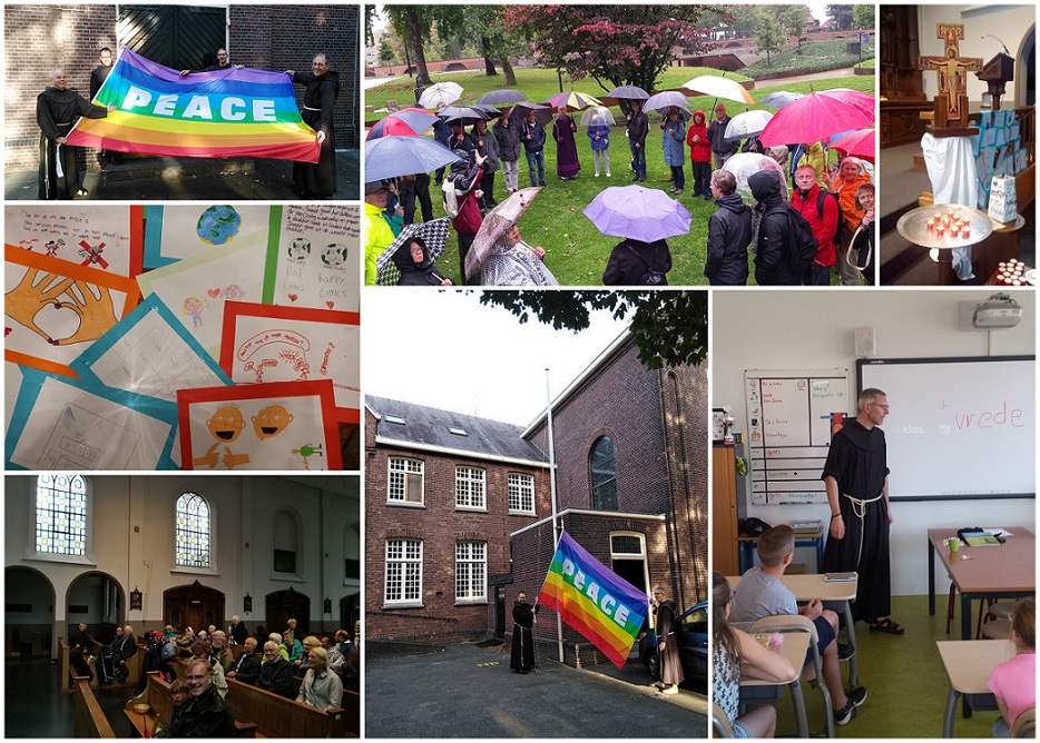 Zondag 23 september werd de Vredesweek in Stadsklooster San Damiano afgesloten met een Vredeswandeling georganiseerd door de Werkgroep Vredesweek. De hele week hadden we tot een kwartier extra tijd genomen voor een gebed voor de vrede. Hierbij werden vele kaarsjes ontstoken. Achter het San Damiano kruis en de vredeszuil hingen tekeningen en gedichten van scholieren over vrede en hoe zij de weg van ruzie naar vrede zagen.
