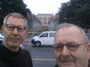 In maart (14 – 17 maart) waren vanuit de commissie Gerechtigheid Vrede en Eerbied voor de schepping, br. Hans van Bemmel en br. Roland Putman naar Geneve voor de jubileumviering voor Franciscan International. Franciscan International (F.I) is een organisatie van samenwerkende religieuzen, die zich als advocaten voor de mensenrechten, gerechtigheid en het milieu inzetten. F.I. is 30 jaar geleden ontstaan doordat franciscanen die met de mensen in schrijnende situatie leefden, hun zorgen op een hoger plan brachten om recht te doen aan die mensen. In F.I. zijn naast minderbroeders (ofm/cap./conv.), ofs-leden, ook andere religieuzen, zoals een 34 tal congregaties en de dominicanen betrokken. Via dat netwerk, krijgen ze veel informatie over wat er speelt op het gebied van o.a. mensenrechten en kunnen ze mensen mobiliseren om op te komen voor de rechten van de meest kwetsbaren en via juridische wegen kunnen ze zich ook zelf succesvol inzetten voor die mensen.