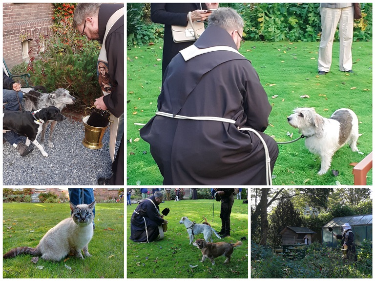 Op 4 oktober ontvingen we op het hoogfeest van Franciscus van Assisi vele baasjes die zo’n 20 honden en een kat meebrachten voor de jaarlijkse dierenzegening in de kloostertuin. Zo werd de bijzondere band tussen mens en dier in het zonnetje gezet.